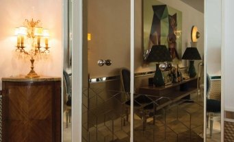 Reflective glass offering a sleek finish for mirrors and decorative accents.